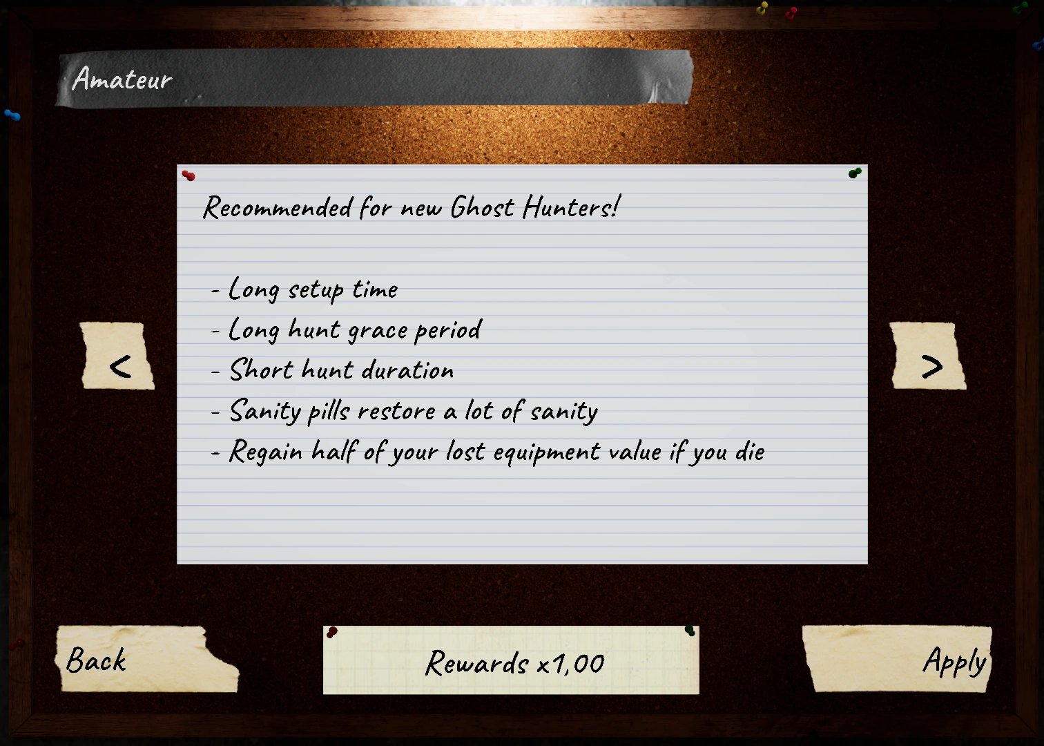 Cette difficulté est un défi destiné uniquement aux joueurs connaissant parfaitement les mécanismes du jeu, ayant une solide expérience pratique de la chasse aux fantômes et disposant d'une stratégie ou d'un plan d'action solide, notamment en équipe.